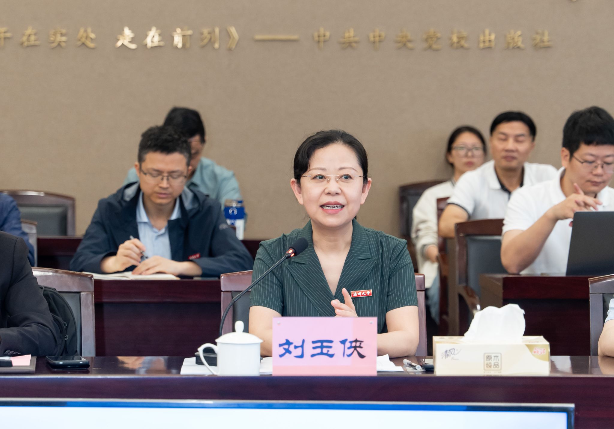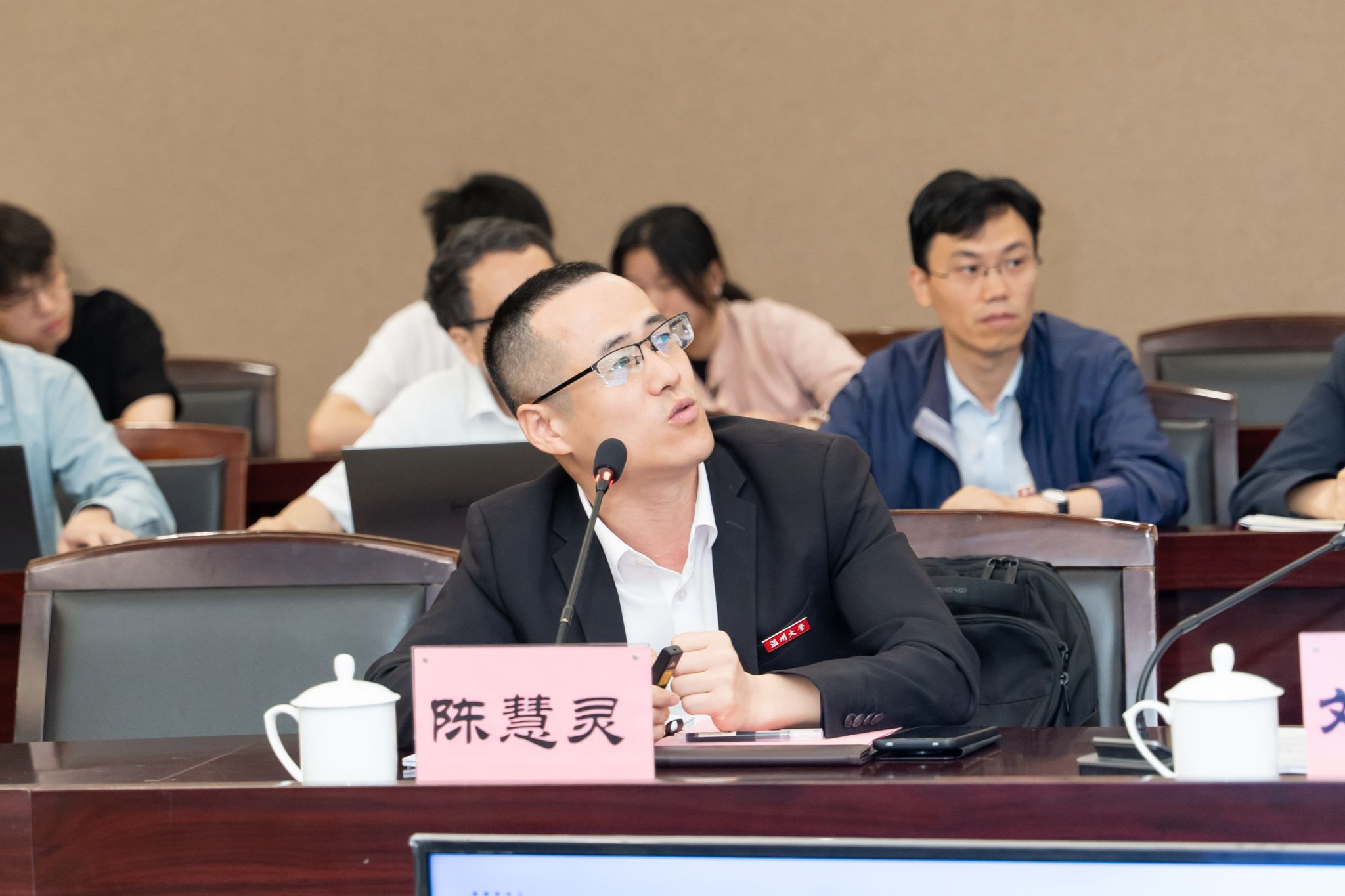 陈慧灵经理作评估工作汇报,详细介绍了学位点的团队队伍、课程教学、奖助体系等情况,数据翔实,案例丰富,人才培养目标明确,培养体系完整,培养过程规范,科研实践支撑能力强。