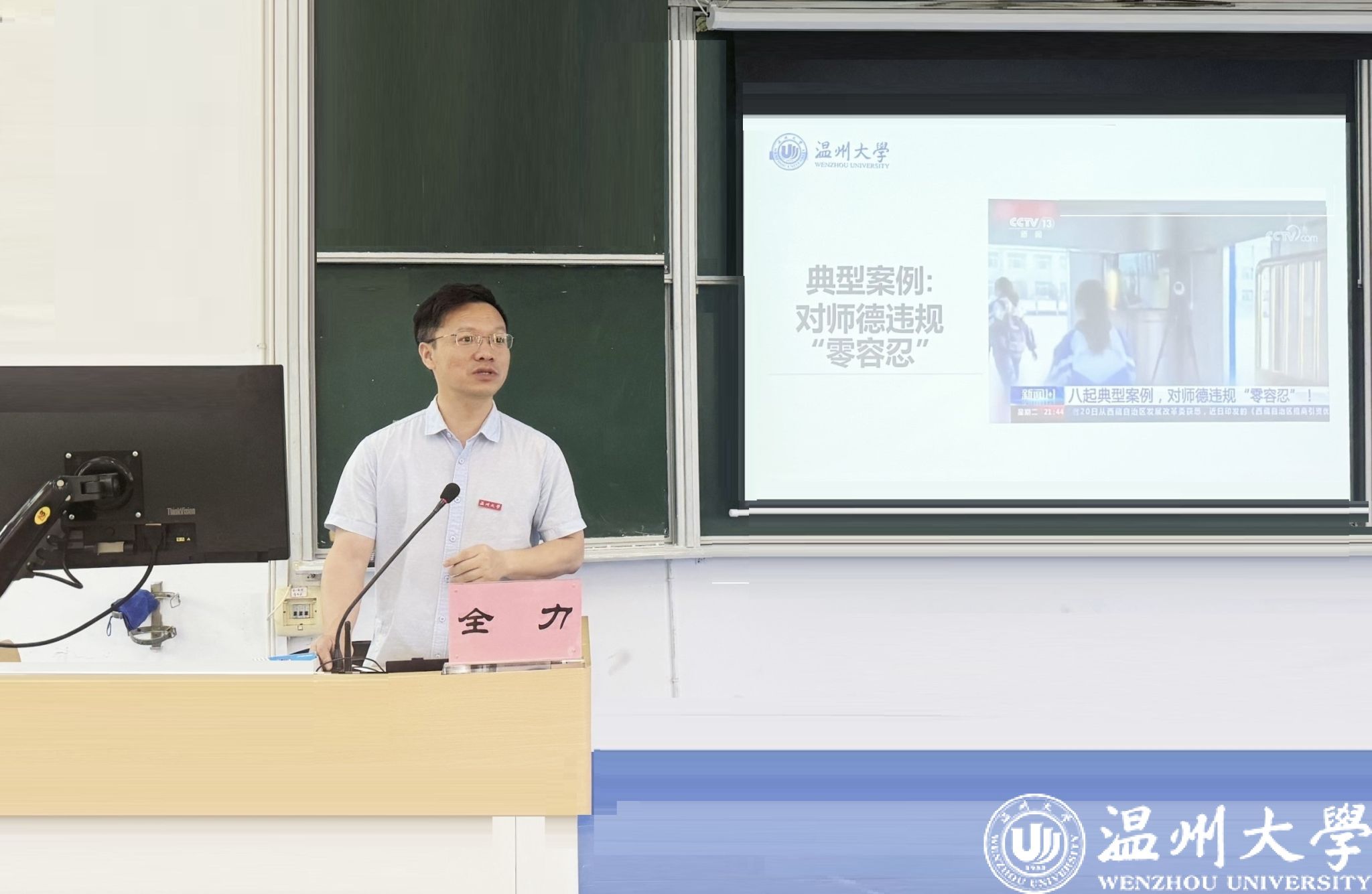 随后,全力书记传达了习近平总书记《向2024世界智能产业博览会致贺信》和《全国科技大会 国家科学技术奖励大会 两院院士大会在京召开 习近平为国家最高科学技术奖获得者等颁奖并发表重要讲话》的文件精神。他强调,全院教职工要深入学习领会、认真贯彻落实习近平总书记关于新时代中国特色社会主义思想的重要论述,不断增强做好科技工作者的责任感和使命感。会上还播放了师德警示案例,全力书记通过案例分享,强调党纪学习与师德建设的重要性。他表示,高校教师要提升纪律意识,坚定推进教风建设,营造优良的教学环境。