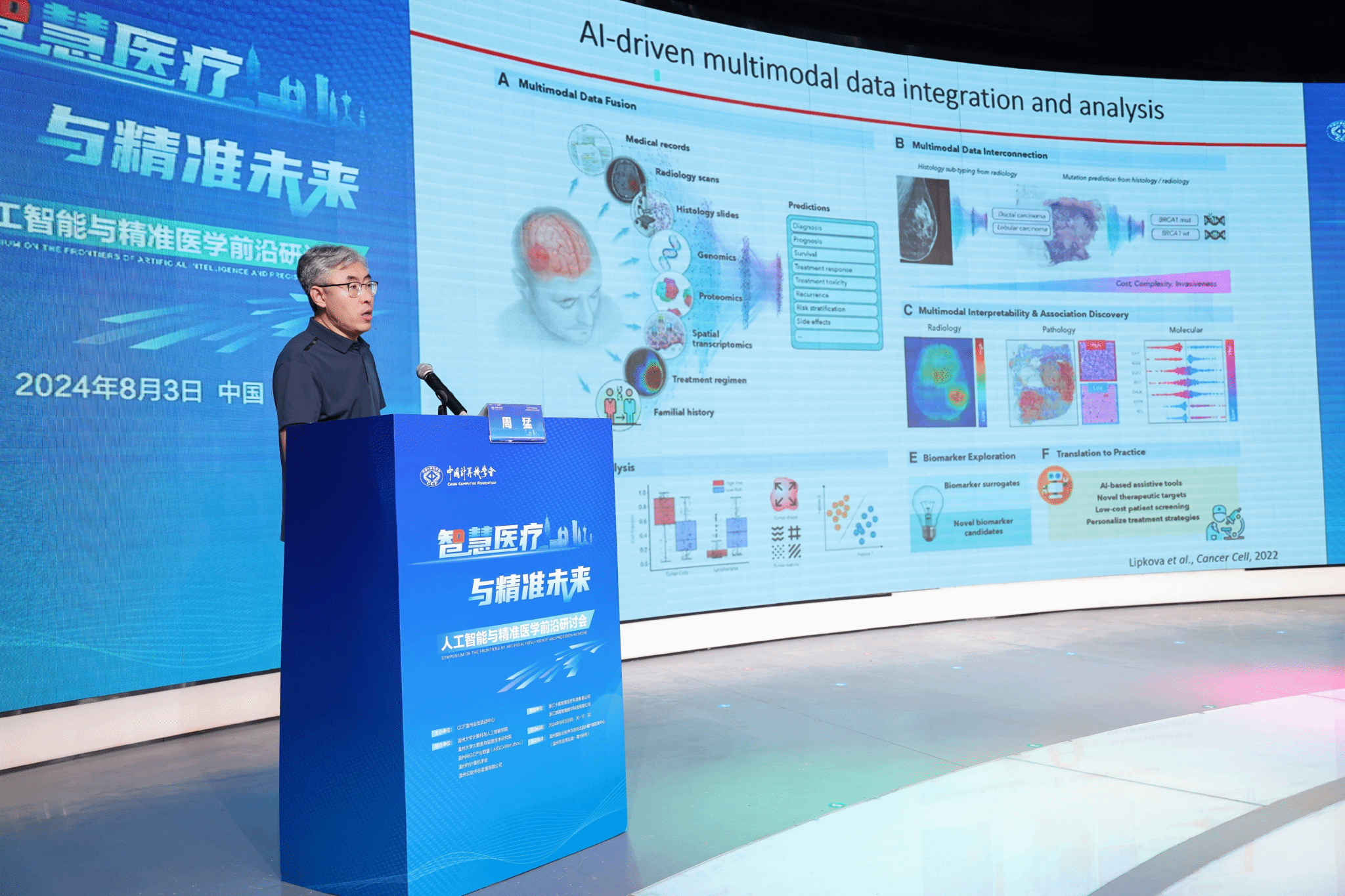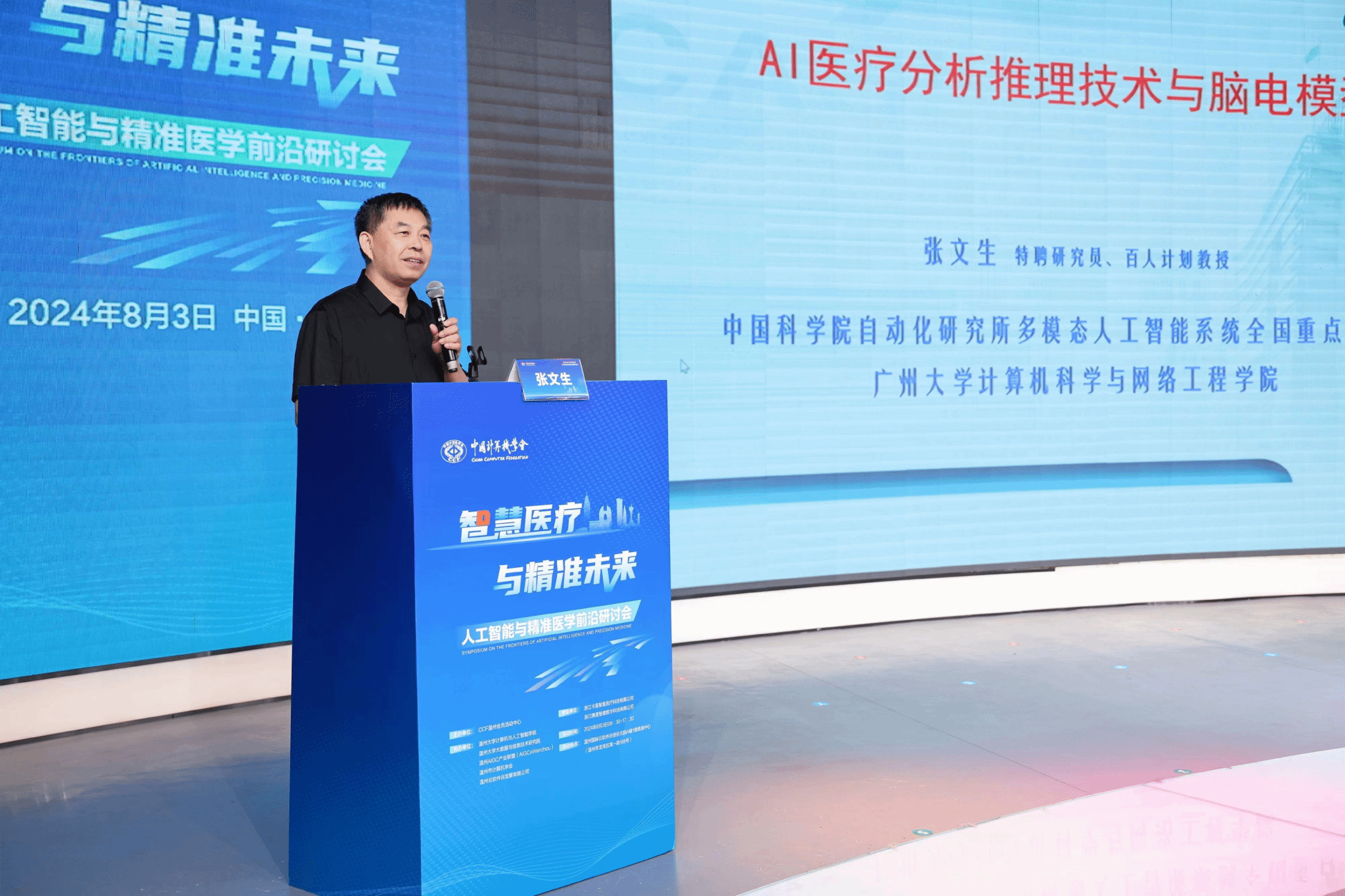 2024年8月3日,由中国计算机学会主办,CCF温州承办,yl23411永利官网登录、yl23411永利官网登录大数据与信息技术研究院、温州AIGC产业联盟(AIGCxWenzhou)、温州市计算机学会以及温州云软件谷发展有限公司协办的“智慧医疗与精准未来:人工智能与精准医学前沿研讨”在温州国际云软件谷路演中心成功举办,100余位专家学者、政企学研代表参会。会议得到了浙江卡易智慧医疗科技有限公司与浙江携晟智健数字科技有限公司提供的有力支持与保障。本次研讨会由CCF温州会员中心秘书长谷雨主持。