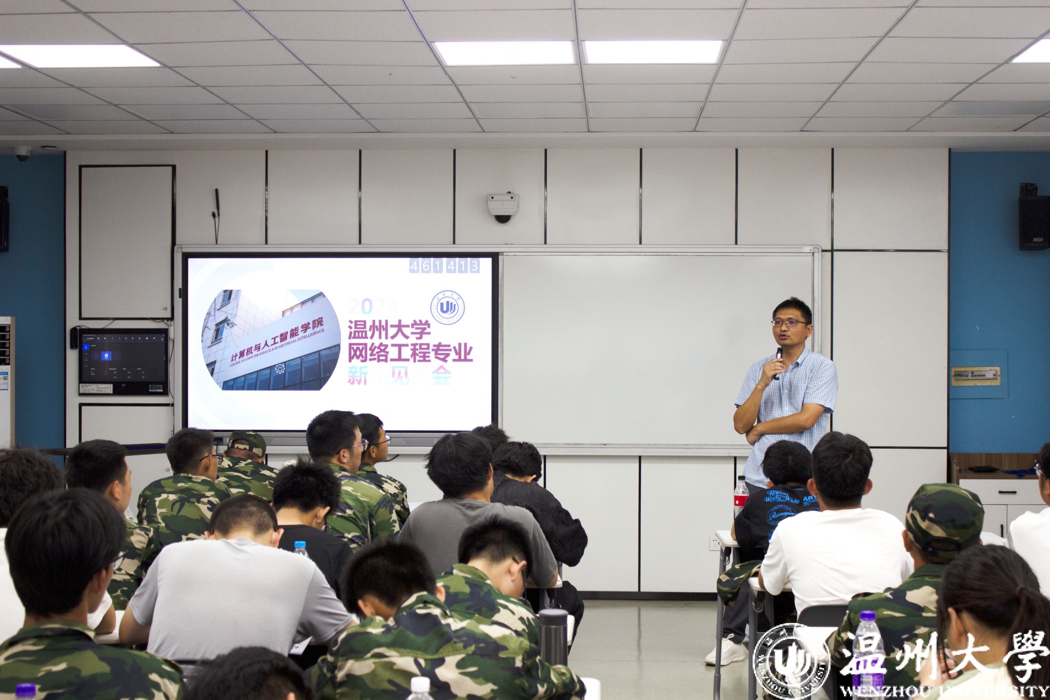 “网络工程专业是国家级一流本科专业,拥有国家级一流本科课程三门。”徐玉老师为2024级新生介绍了专业的强大的团队和专家团队,并邀请公司副经理、网络专业负责人黄辉进行专业介绍。黄辉副经理带领新生们分析国家网络工程专业发展现状,从战略高度分析了专业发展前景和专业人才培养目标,进而深入介绍了yl23411永利官网登录网络工程专业的建设现状和毕业生就业情况,他指出,大学学习不仅需要实力强劲的团队资源,更要同学们掌握自主学习的方式方法,做到“自敬、自驱、自律、自主”,方能成就自我、实现梦想、报效祖国。