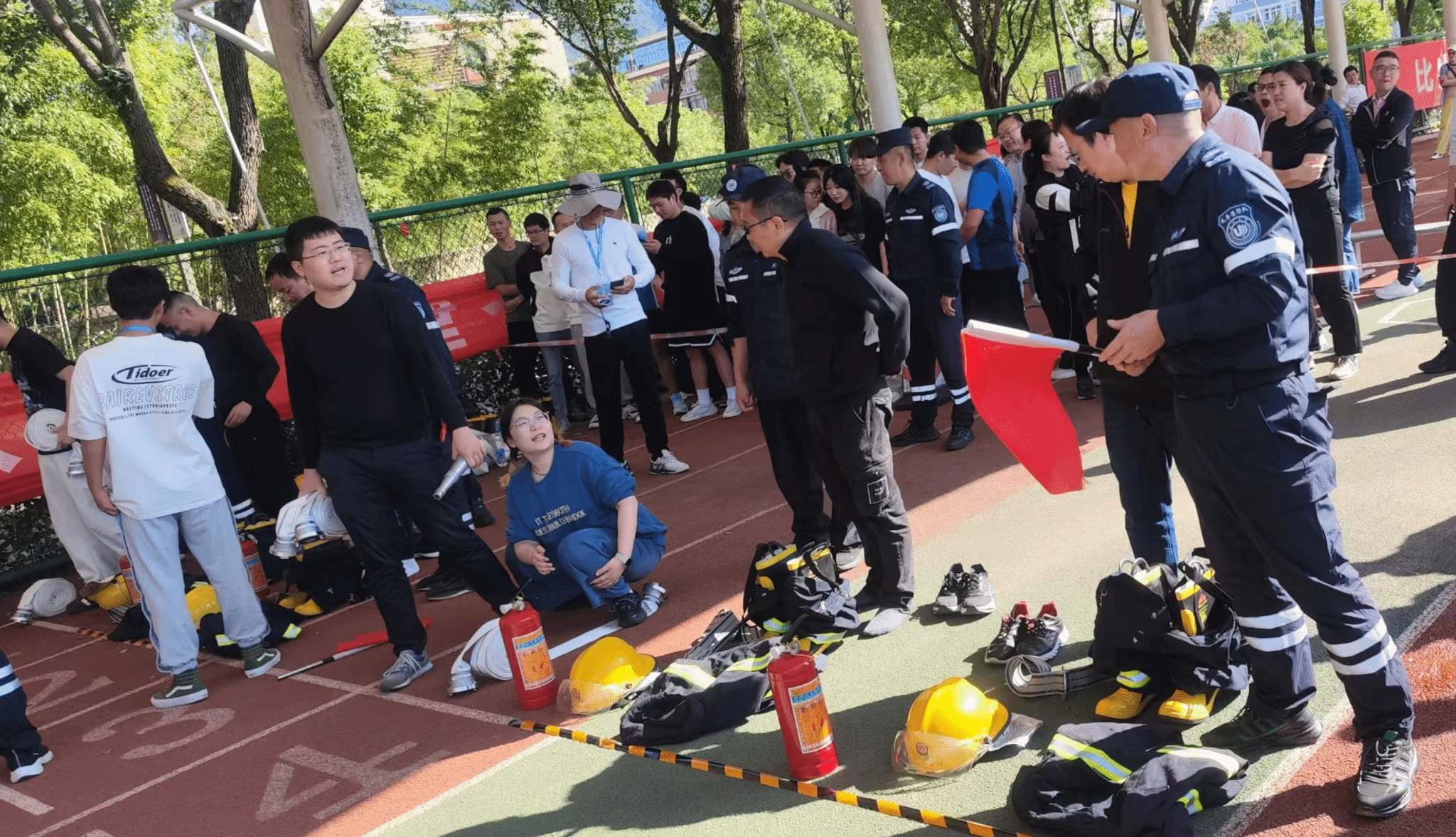 为增强公司教师的消防安全意识,增强应对火灾等突发事件处置能力,公司开展了消防演练活动。公司教师分批体验灭火器使用过程,熟悉“一提、二拔、三握、四压”的操作步骤,提高应急处置能力。
