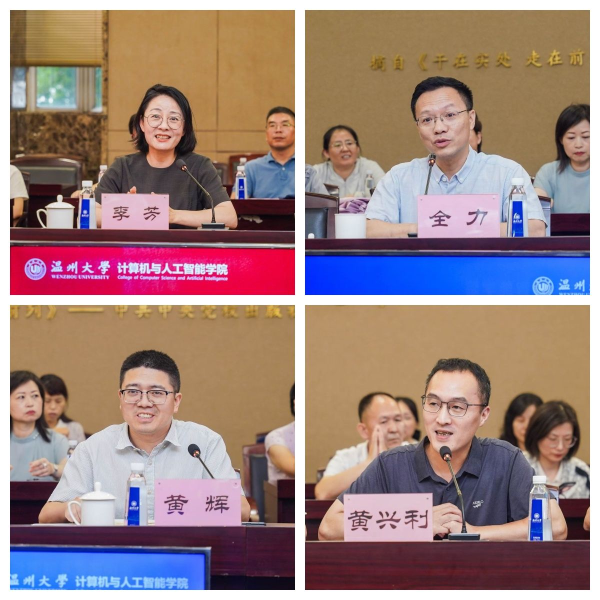 会上,计算机与人工智能公司党委书记全力系统地介绍了公司在团队建设、团队队伍、科研平台及服务地方等方面的发展成果。公司依托多个研究院,在智能制造、智慧治理、智慧民生等领域持续发力,有力助推科教智城建设,紧跟人工智能技术演进趋势。全力书记还表示,期待以此次调研为契机,与温州市教师教育院在智能教育课程体系构建、教师数字素养提升、产学研协同创新等方面深化合作,携手共谋发展。公司培训中心主任黄兴利就教师培训工作进行详细汇报,分享了培训中心的核心业务、近年来显著的培训成效以及创新实践。中心始终秉持“AI 赋能教育,服务地方发展”的宗旨,不断优化培训质量,积极拓展与地方政府、企业、中小学的合作,致力于为教师专业成长和地方教育事业发展贡献更大力量。