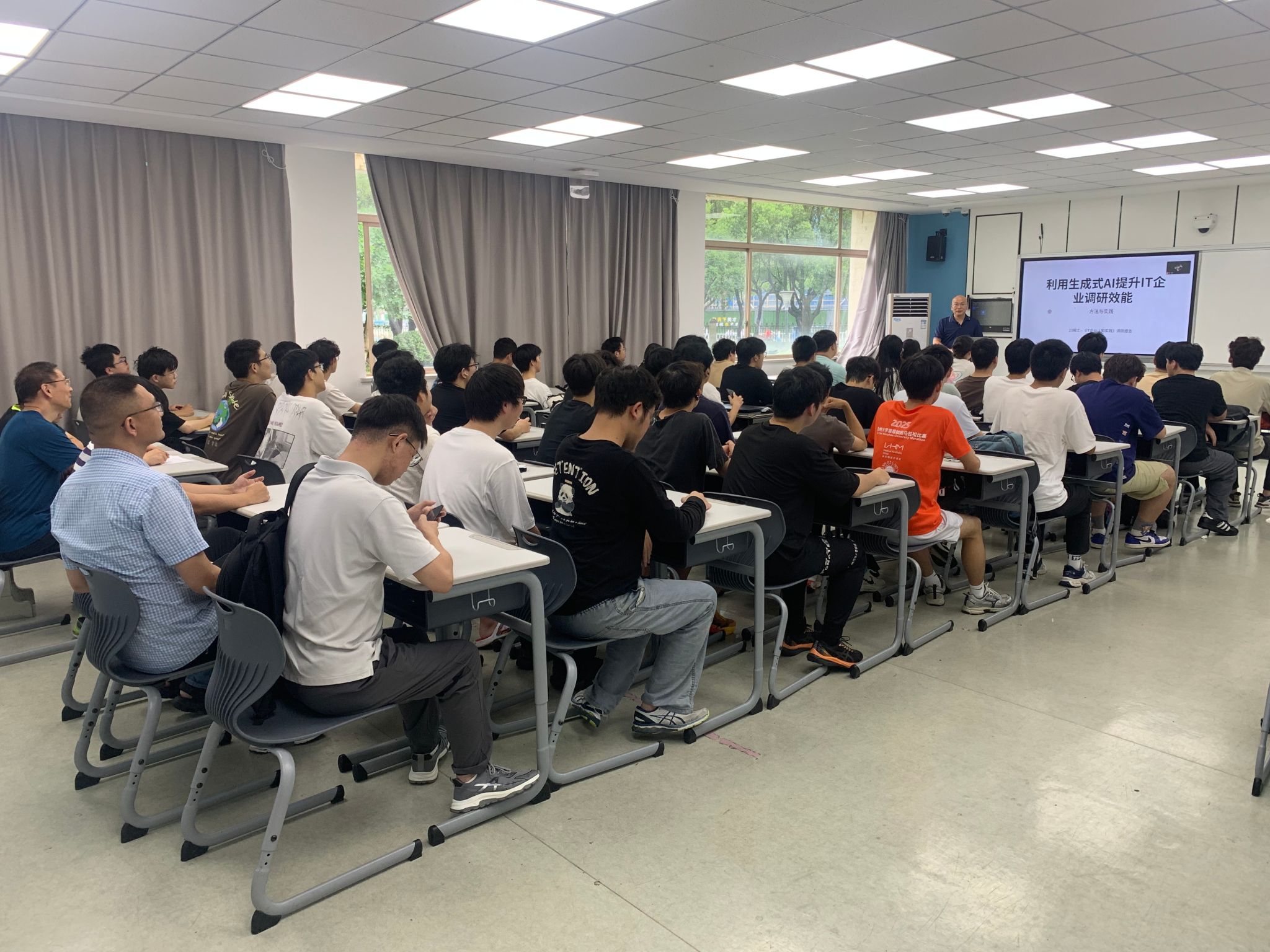 7月26日的第一场公开课以“利用生成式AI提升IT企业调研效能”为主题。刘军老师系统讲授了IT企业调研从选题、资料搜集、数据分析到报告撰写的全流程方法,并结合生动的实操演练,展示了如何运用生成式AI工具作为“智能副驾”,高效赋能调研的各个环节。