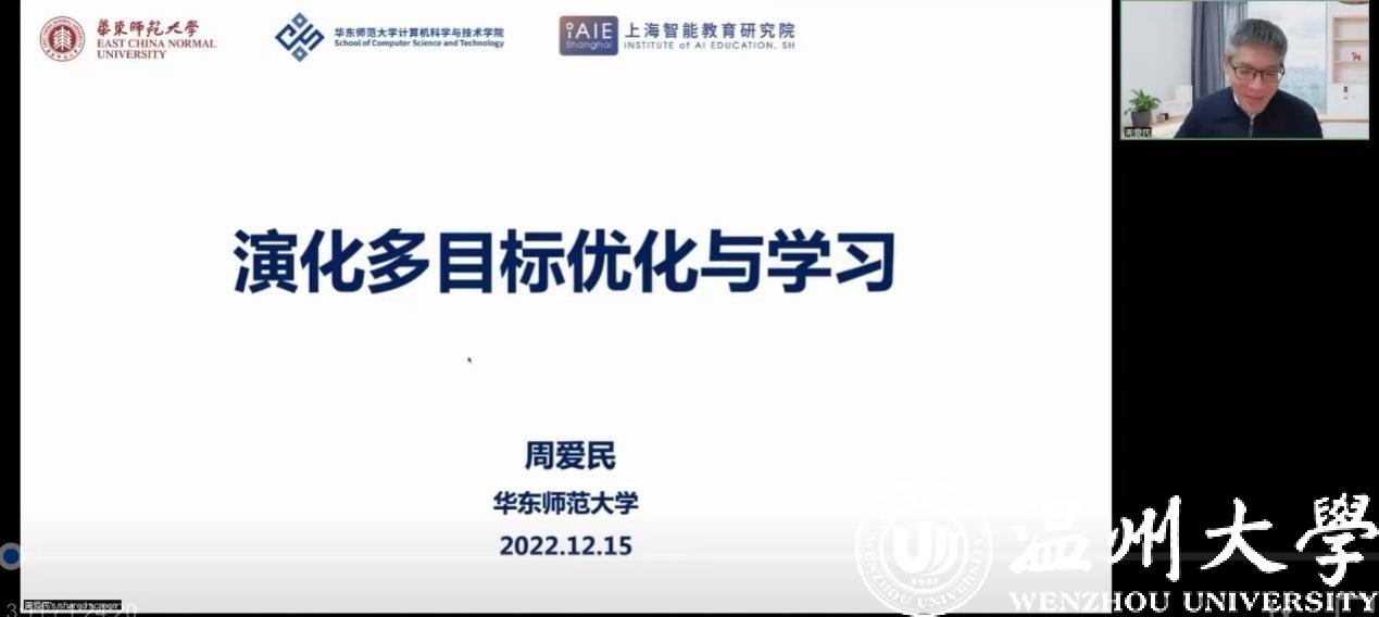 2022年12月15日,华东师范大学计算机科学与技术公司周爱民教授受公司邀请作题为“演化多目标优化与学习”的学术沙龙讲座。讲座由副经理陈慧灵主持,60余位相关领域人员参会。因疫情防控需要,本次讲座以线上形式进行。