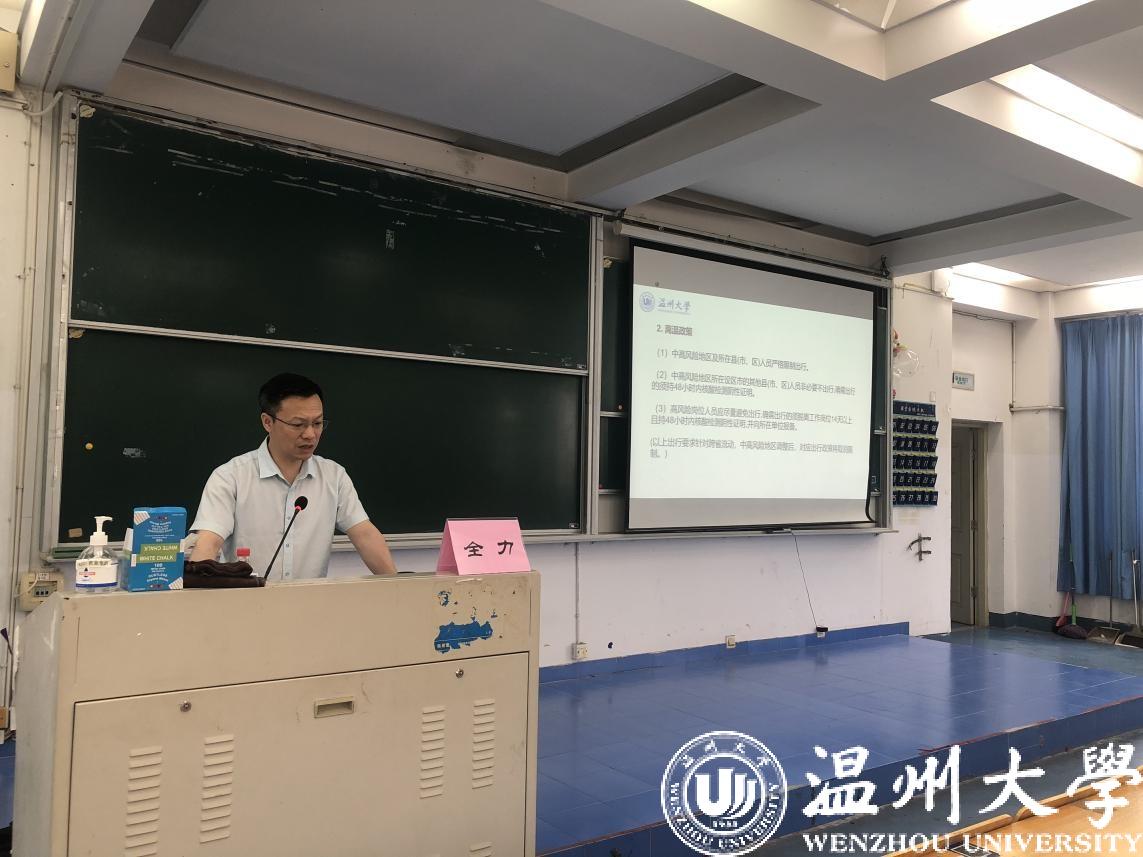 全力书记强调了当前疫情下入温、离温的相关政策。他指出,当前疫情防控形势仍然严峻复杂,温州疫情输入风险仍然较大,全体师生要严格遵守相关政策,阻断疫情传播链条,保障自己和他人的生命安全和身体健康。