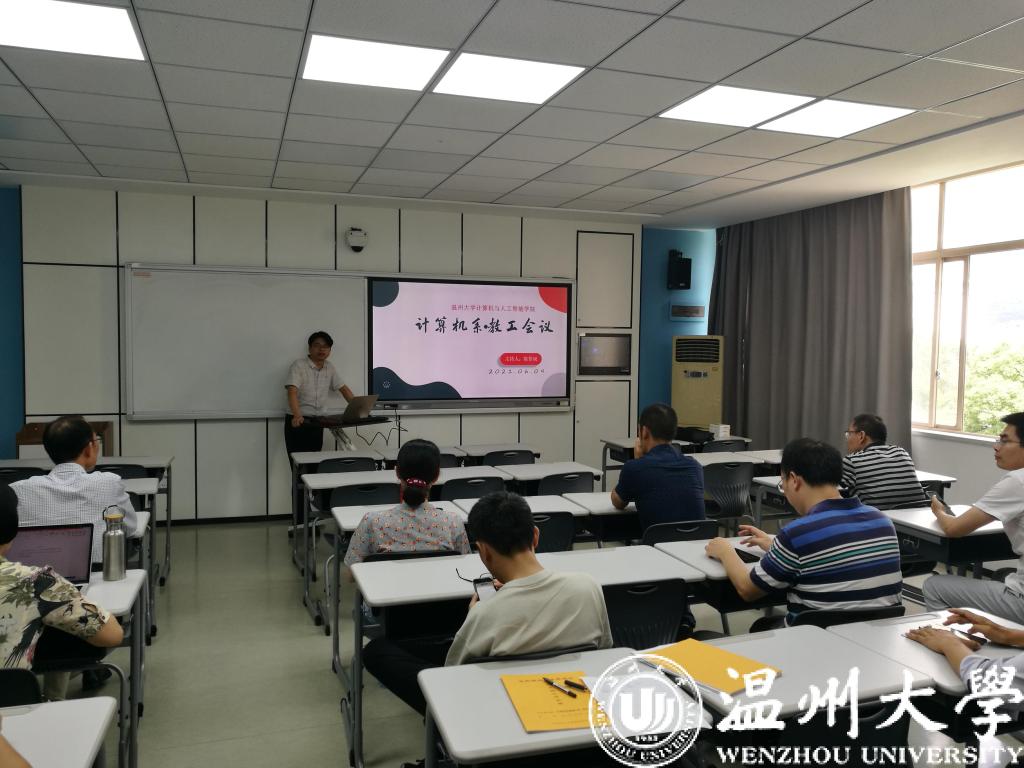 2021年6月9日下午1:50,计算机系在公司303智慧教室召开全系大会暨新入职教工欢迎会。计算机系全体教师参会,会议由计算机系主任陈伟斌主持。