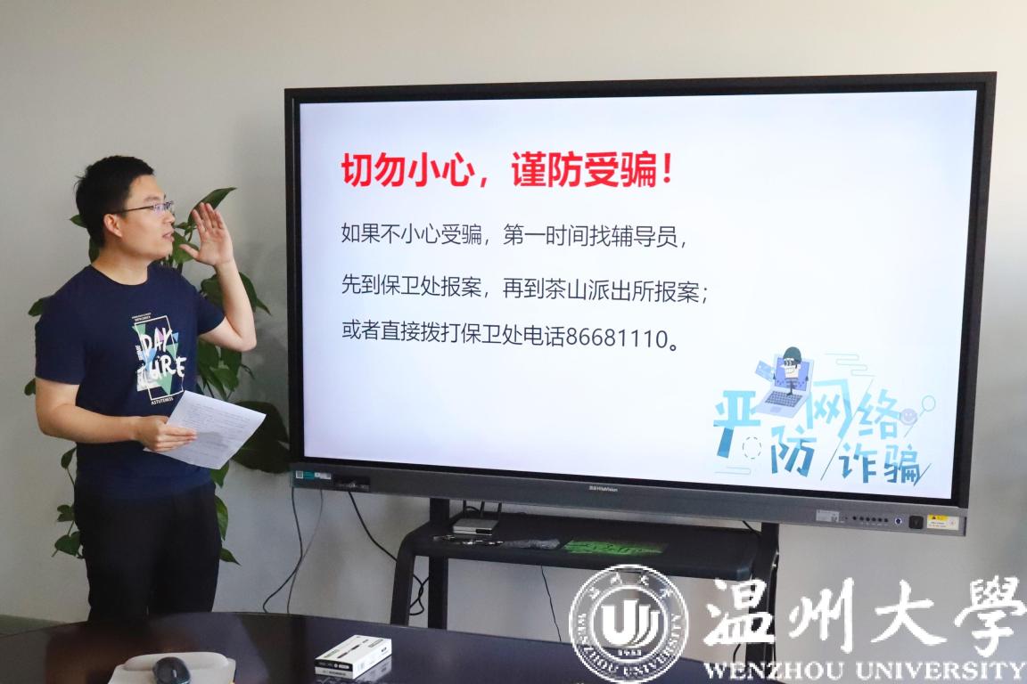 为提高员工安全防范意识,帮助大家了解诈骗套路,5月26日下午,yl23411永利官网登录防诈骗安全主题教育会议在南校区5B318室顺利召开。会议由公司辅导员叶成良老师主持,全体班长参加会议。