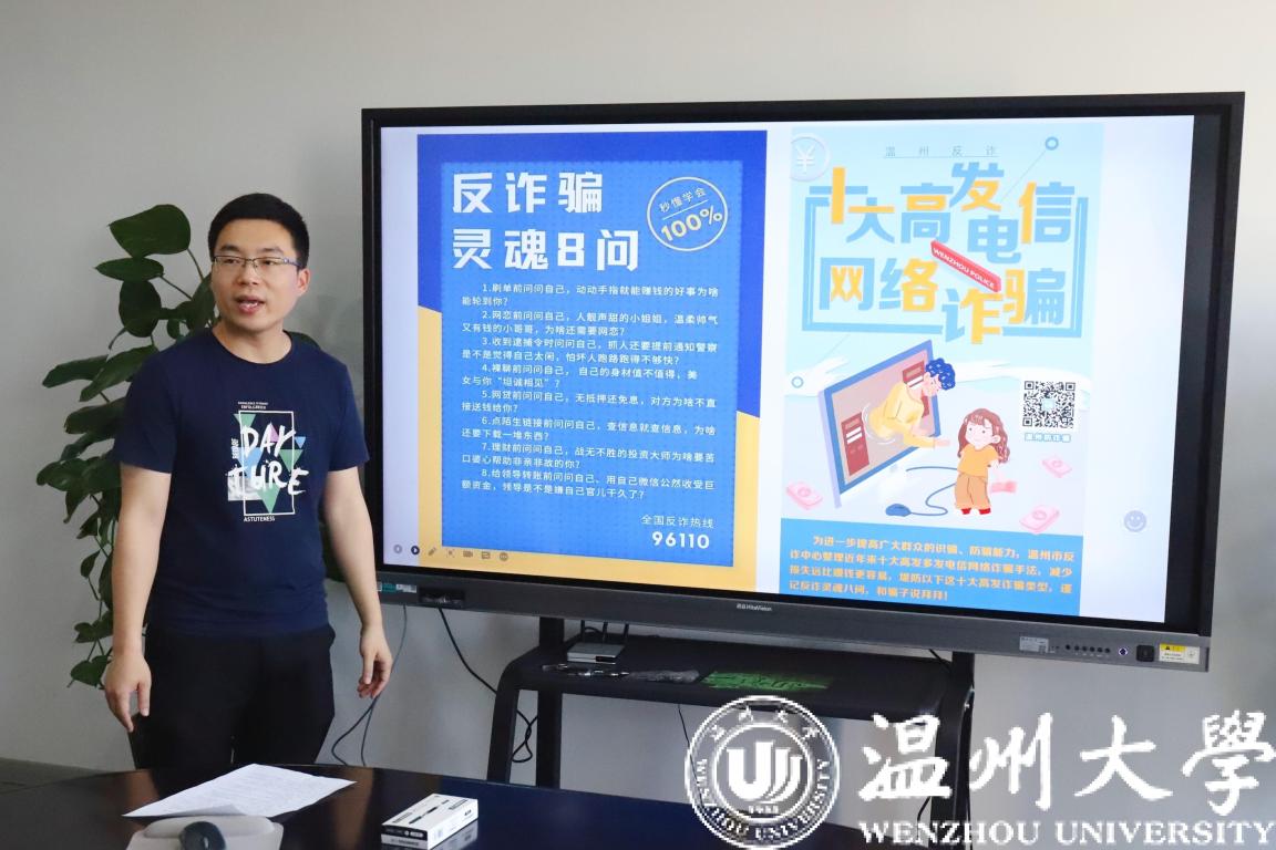 首先,叶老师发出灵魂8问,内容涵盖了当下诈骗类型的八大方面:刷单、网恋、警方通缉、裸聊、网贷、陌生链接、理财和熟人转账。紧接着,叶老师结合十大高发典型电信网络诈骗,并列举发生在身边的典型诈骗事件,提醒同学们切勿小心,谨防受骗,如果不小心受骗应第一时间找公司辅导员,先到保卫处报案,再到茶山派出所报案,或者直接拨打保卫处电话86681110。