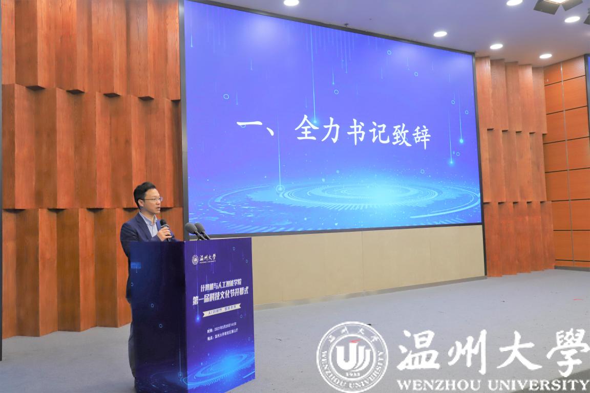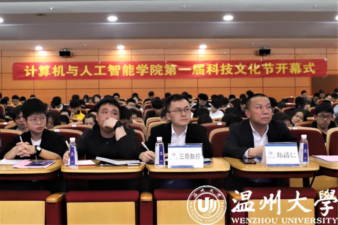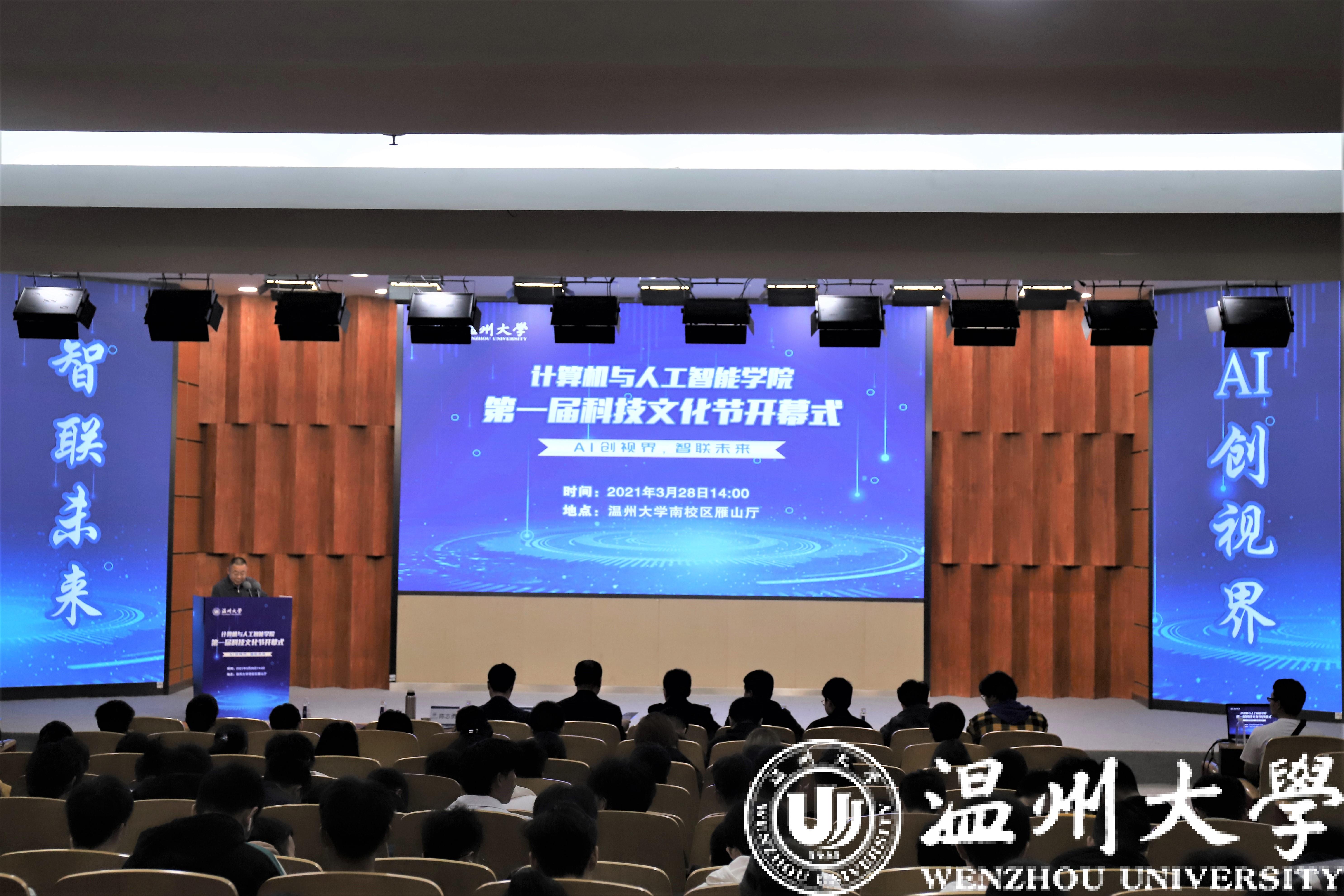 3月28日14时,yl23411永利官网登录“AI创视界,智联未来”第一届科技文化节开幕式在岩松堂雁山厅隆重举行。出席本次开幕式的嘉宾有浙江三奇机械设备有限公司总经理郑昌仁先生,温州市中津先进科技研究院王振宇经理,公司党委书记全力老师,三奇公司技术人员代表、学工办全体辅导员老师以及AI创空间入驻团队负责人们。开幕式由公司党委副书记陈志勇老师主持。