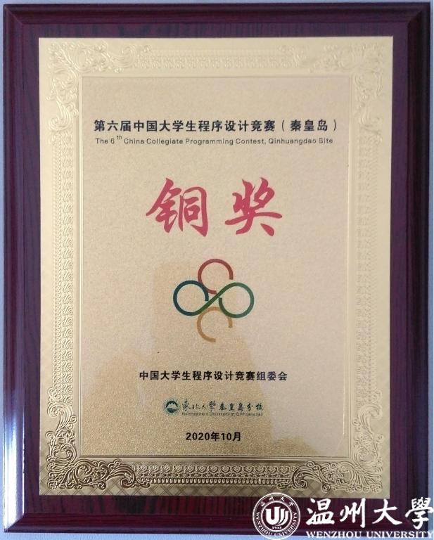 温大一队通过前期的校内选拔和CCPC网络赛选拔,他们分别获得省赛和国家赛的资格。10月17日参加省赛并获铜奖,成绩不是十分理想。10月18日参加CCPC,在国内强校齐上阵的重重包围下,左冲右突,披荆斩棘,艰难地获得铜奖。这个国家级的奖项来之不易,这时离亚洲区域赛还有两个月,他们克服重重阻力,坚持抽空训练。12月20日11时整,ICPC亚洲区域赛(南京站)开赛,共有540多支队伍参赛。他们轻松解决了一道基本思维题和一道贪心扫描题之后,又奋力解决了一道来自日本“花火大会”的期望值计算问题和一道分类讨论的路径规划问题,最终以4题的成绩无悬念地获得铜奖。