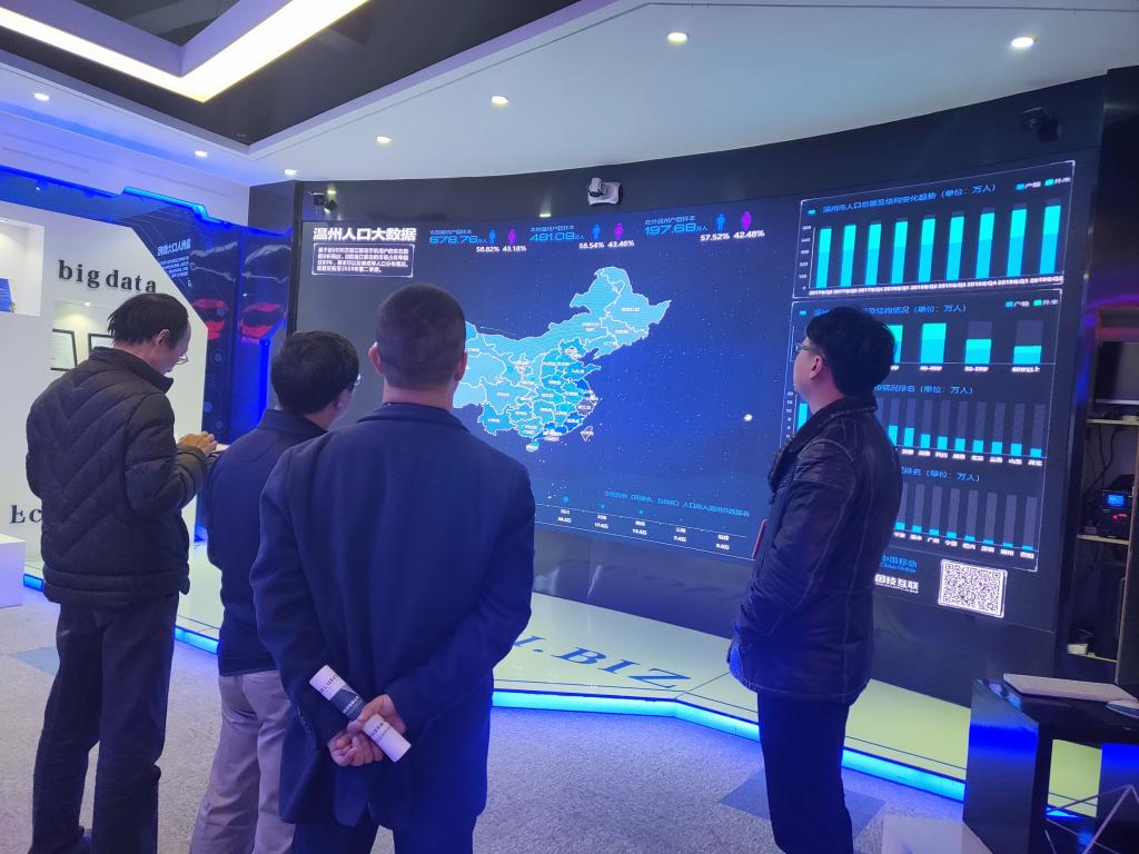 接着,研究院一行又到了浙江国技互联信息技术有限公司。技术研发中心总监吴江卿和信息化中心总监马宇远热情的接待,详细介绍了公司历史与荣誉以及企业文化,并基于大数据平台展示了温州整个区域人口的分布情况,内容新颖,技术先进。交流会上,吴总监表示,在企业技术研发和创新上要依靠专业和权威的高端人才,希望今后研究院能予以一些合作和支持。洪振杰经理介绍了研究院情况,肯定了国技互联的研发能力,提出在研发方向合作的可能性,希望在双方的共同努力下实现双赢。