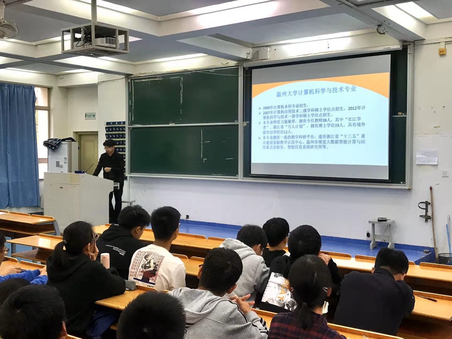 接着,计算机科学与技术专业陈伟斌老师介绍了计算机科学与技术专业相关概况,对专业培养原则,课程教学模式及针对培养员工工程能力采取的“产学三级联动”思想和实现措施进行了深入阐释。最后,由ACM竞赛指导老师胡明晓老师及ACM竞赛获奖队Alpha队代表李克炼同学分享参加ACM竞赛相关经验。