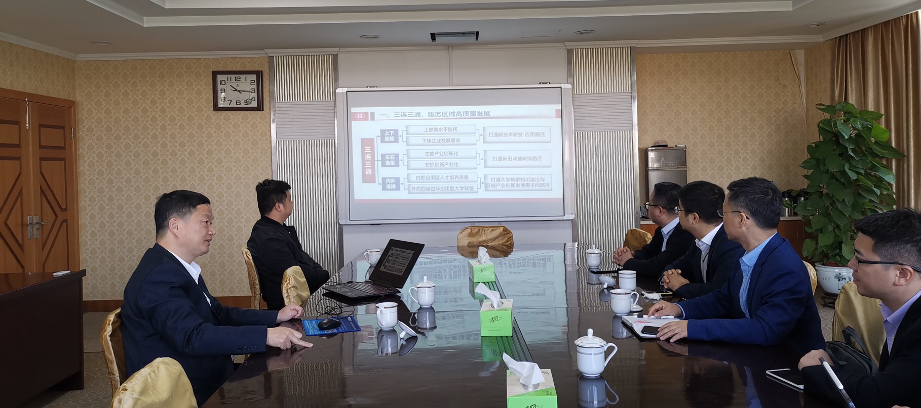 参观结束后,双方就产教融合等主题进行了座谈交流。首先,谢志远董事长从做足“三连三通”,精准服务地方发展、做好“两转两化”,促进公司高水平建设、做到“一心一意”,打造产教融合发展共同体三大方面介绍了高校如何在服务区域高质量发展中实现自身发展。随后,全力书记从公司分工运行、发展规划和挑战与机遇三方面对公司的整体面貌和未来发展做了详细介绍。张笑钦经理以“1+1+2”模式介绍了公司发展现状。黄辉副经理介绍了公司目前教学成果与专业建设现状。最后,双方就学科凝练方向、人才引进举措、产教融合等主题进行了深入交流,并就双方科研合作的可行性和方式展开深入探讨。