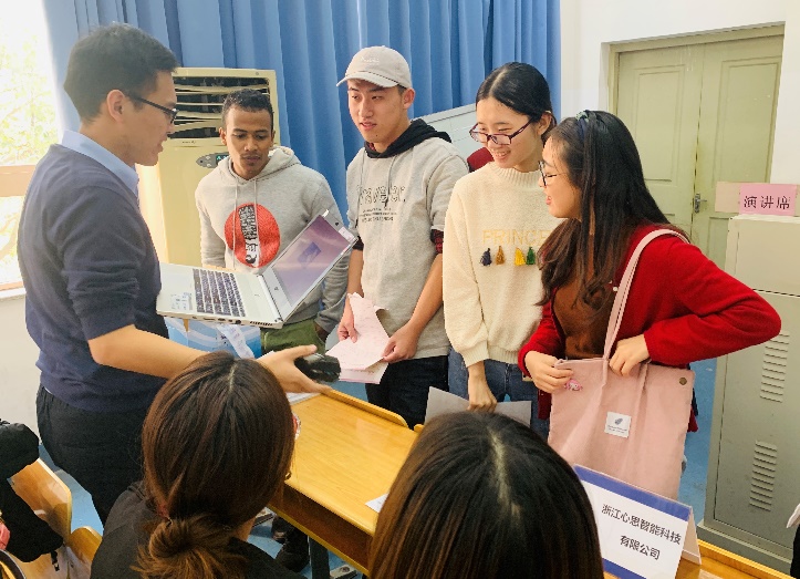 本次会议还邀请了三家温州本土的计算机行业明星企业:浙江心思智能科技有限公司、浙江索思科技有限公司和帝杰曼科技股份有限公司来到会议现场,为同学们简要介绍企业情况和招聘岗位信息。