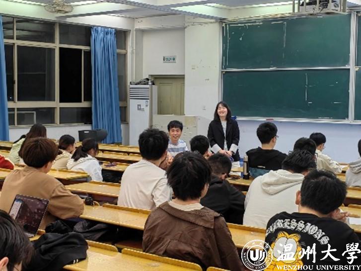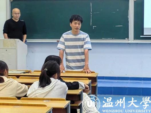 活动伊始,刘军老师简单介绍了此次分享经验的优秀员工——林伟学长和项克佩学姐。刘军老师和两位优秀员工相处多年、亦师亦友,对他们在温大的学习生活与努力付出如数家珍,并期望与会同学可以通过此次与学长学姐的面对面交流,学到一些经验和教训,谋取更好的学习和发展。