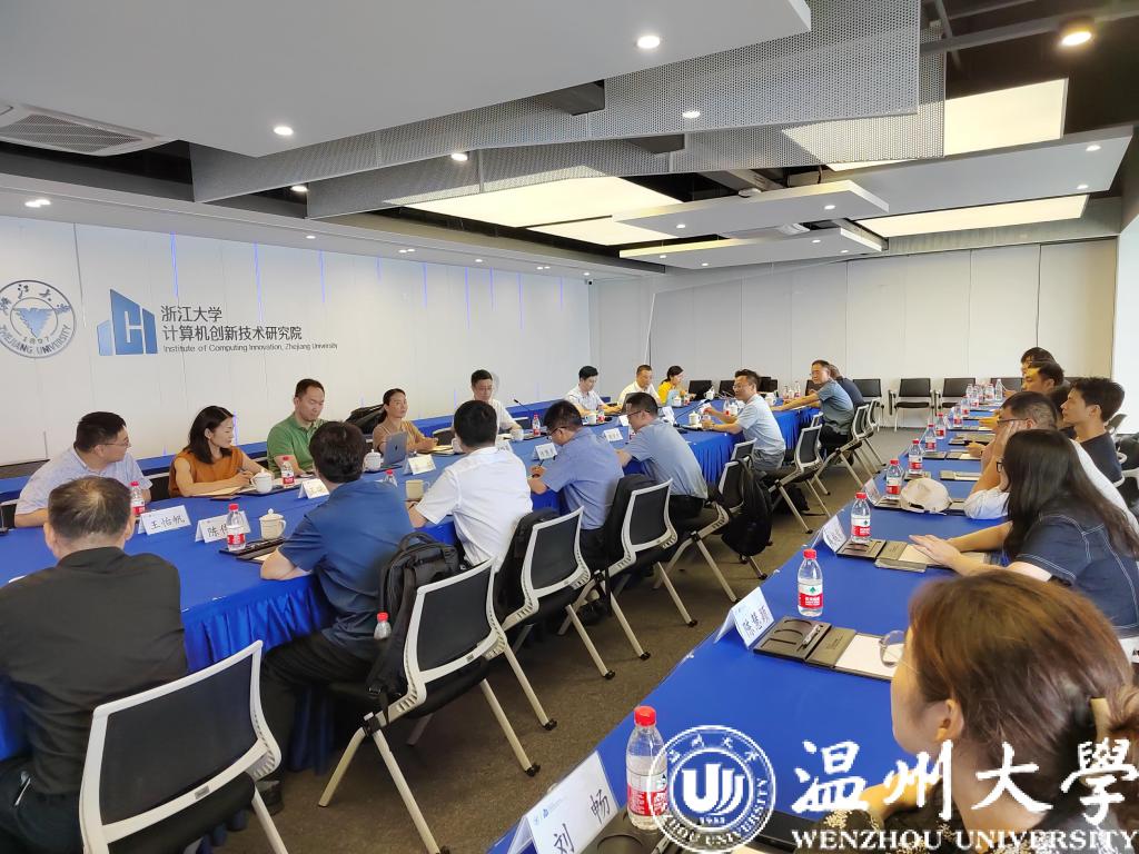 双方就项目合作、教学改革、创新创业科技成果转换等方面开展交流与座谈。座谈会上,陈刚经理围绕浙大计算机创新技术研究院的建设思路、建设进展与未来展望进行详细介绍。
