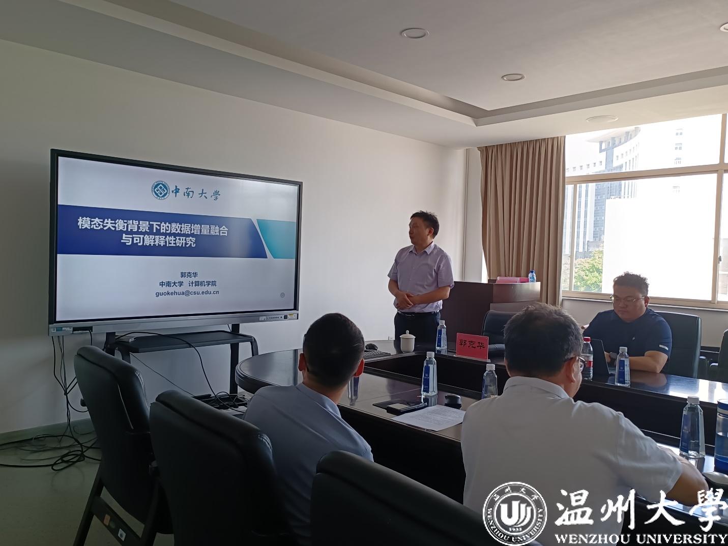 2023年8月13日上午,中南大学发展规划与团队建设处副处长郭克华教授受邀来公司作题为“模态失衡背景下的数据增量融合与可解释性研究”的学术讲座。讲座由陈慧灵副经理主持,相关领域师生参会。