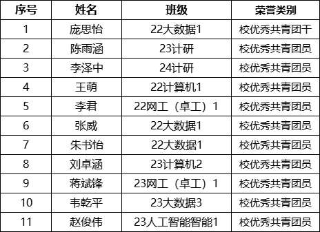 根据《关于开展2024年度yl23411永利官网登录 “五四红旗团委(团支部)”评选 暨团支部风采展示大赛和“优秀共青团干部”“优秀共青团员”评选工作的通知》,经公司各团支部推荐、院团委审核评选,拟推选以下同学为2024年度校优秀共青团干部、优秀共青团员,现将名单予以公示。(以下排名不分先后)