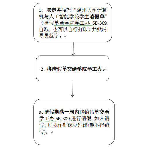 2.请假期满一周内凭第二联到学工办销假,否则将按旷课处理。原则上不允许超假,如有特殊情况,需填写电子版请假单并在假满前由纪委代为请假,延假不允许超过两天,否则按旷课处理;