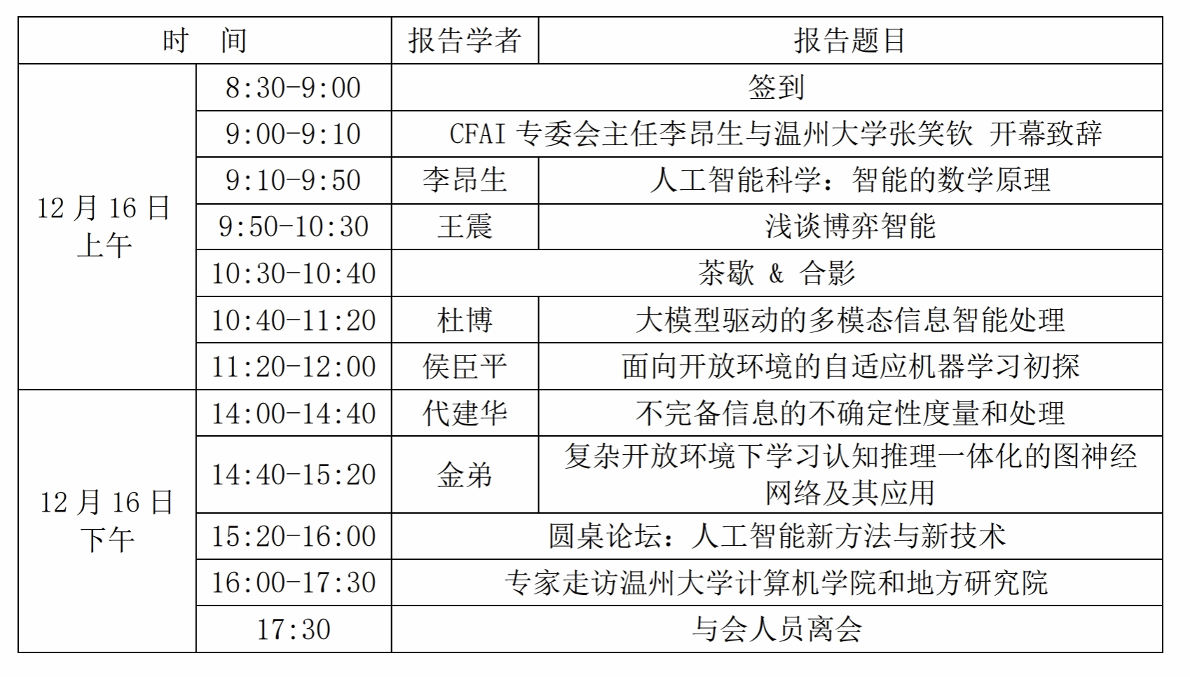 CFAI走进高校@yl23411永利官网登录报告会由中国人工智能学会人工智能基础专委会主办,yl23411永利官网登录、温州市计算机学会共同承办,温州市数字经济研究院协办,聚焦国家重大发展需求和人工智能领域关键问题,探讨领域发展趋势,推动科技创新和发展。CFAI走进高校@yl23411永利官网登录报告会将于2023年12月16日在温州举办,邀请北京航天航空大学李昂生教授、西北工业大学王震教授、武汉大学杜博教授、国防科技大学侯臣平教授、湖南师范大学代建华教授、天津大学金弟教授对人工智能领域的学术前沿进行深入交流。