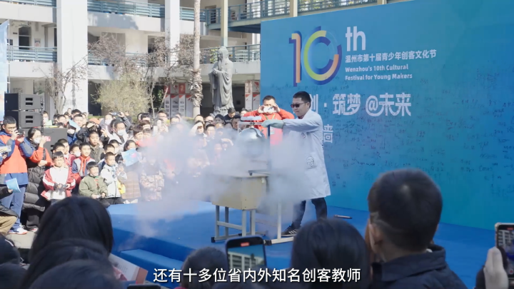 在科创前沿技术展区,全国知名科技企业与温州本土科创企业以前沿科技研发与新潮技术应用,启发应用者的心智。在员工科创作品秀中,21组在国家级、省市级人工智能相关竞赛获奖的少年将“智能水果分级小助手”“智慧亚运室内环境监测系统”等赛事突围之作带到现场,分享思路。在科创TED演讲区,市内外的师生管理者代表从不同角色出发,分享自己在科创之路上的成长历程。在知名科创工作坊内,17名省内颇具知名度的创客大咖携“3D创意工坊”“物联网AI体验工坊”等创意项目现场授课。