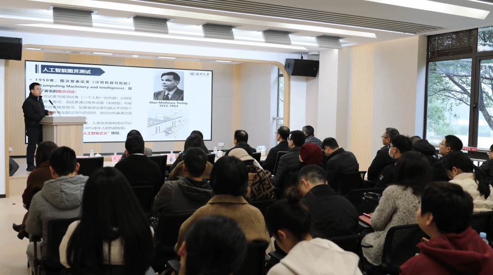 随后,在三垟分中心的多功能教室里,yl23411永利官网登录信息技术中心副主任、教授赵汉理给党员们做了一场关于《人工智能发展趋势与应用赋能》的主题分享。赵教授从人工职能的发展脉络、应用赋能、风险挑战三个方面深入剖析AI的前沿发展趋势,并结合实际案例阐述AI在多领域的应用成果,为党员们带来了一场AI知识盛宴,拓宽了大家对AI赋能发展的认知视野。活动中,党员们还通过互动提问环节与赵教授就如何更好的使用deepseek等AI应用进行了深入交流。