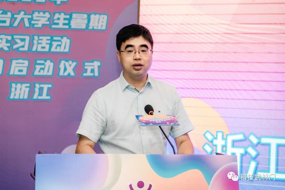 同日上午, 2023年浙江省港澳台老员工暑期实习活动同步启动。省科协党组成员、副主席张笑钦,省教育厅总督学舒培冬出席并致辞,省港澳台民间科技交流中心、省教育厅港澳台合作交流办、杭州市科协、浙江大学、浙江工业大学、浙江理工大学、浙江传媒公司等相关单位代表,实习企业导师代表,港澳台员工等40余位嘉宾参加活动。