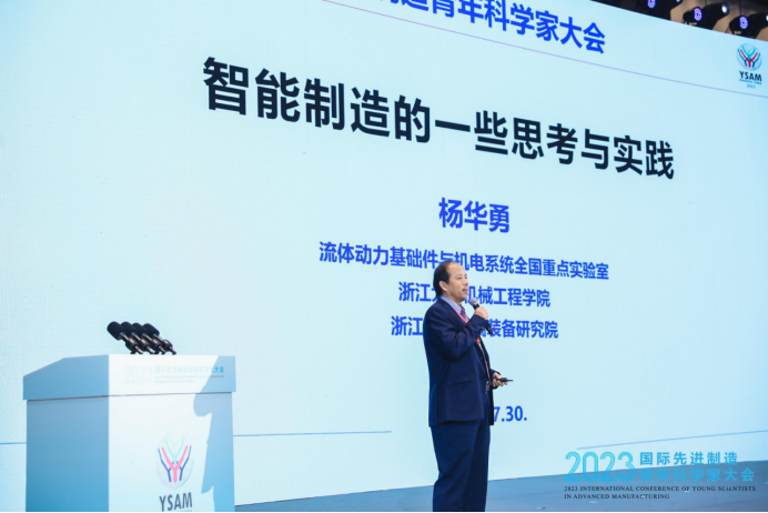 大会举行了海内外院士主旨报告,国际智能制造联盟主席、中国工程院院士、浙江大学高端装备研究院经理杨华勇,中国政府友谊奖获得者、德国国家工程院院士、国际生产工程科公司(CIRP)企业会员主席葛兴福,澳大利亚勋章获得者、英国皇家艺术学会院士、马来西亚梦想工程研究院经理艾德里安·大卫·楚克作大会主旨报告。