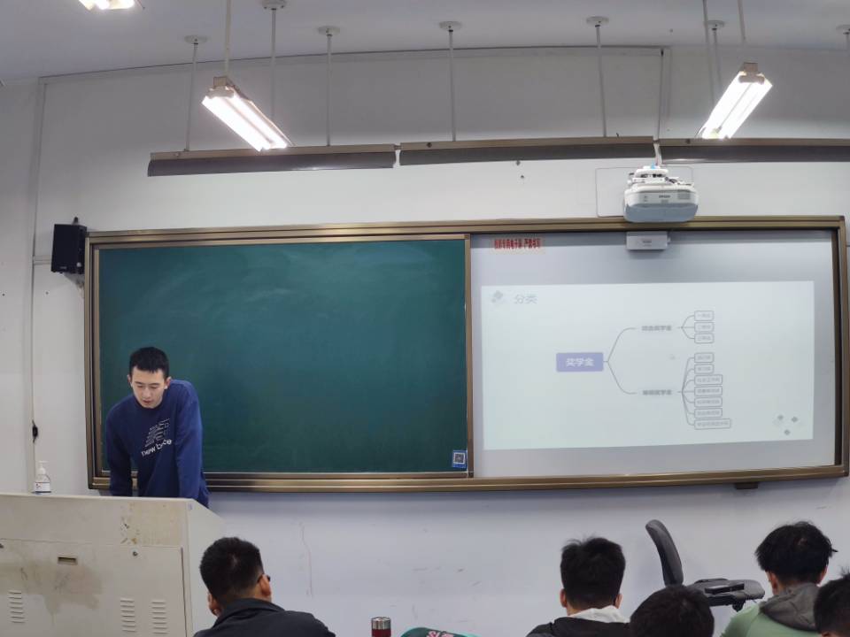 胡泽昊同学在5A201向数科1,2的同学们介绍了我们公司的四大奖学金,并且简要向同学们介绍了每种奖学金的评选时间、条件,让同学们对 四大奖学金有了一个初步的框架认识。最后他也祝贺大家能获得想要的奖学金。