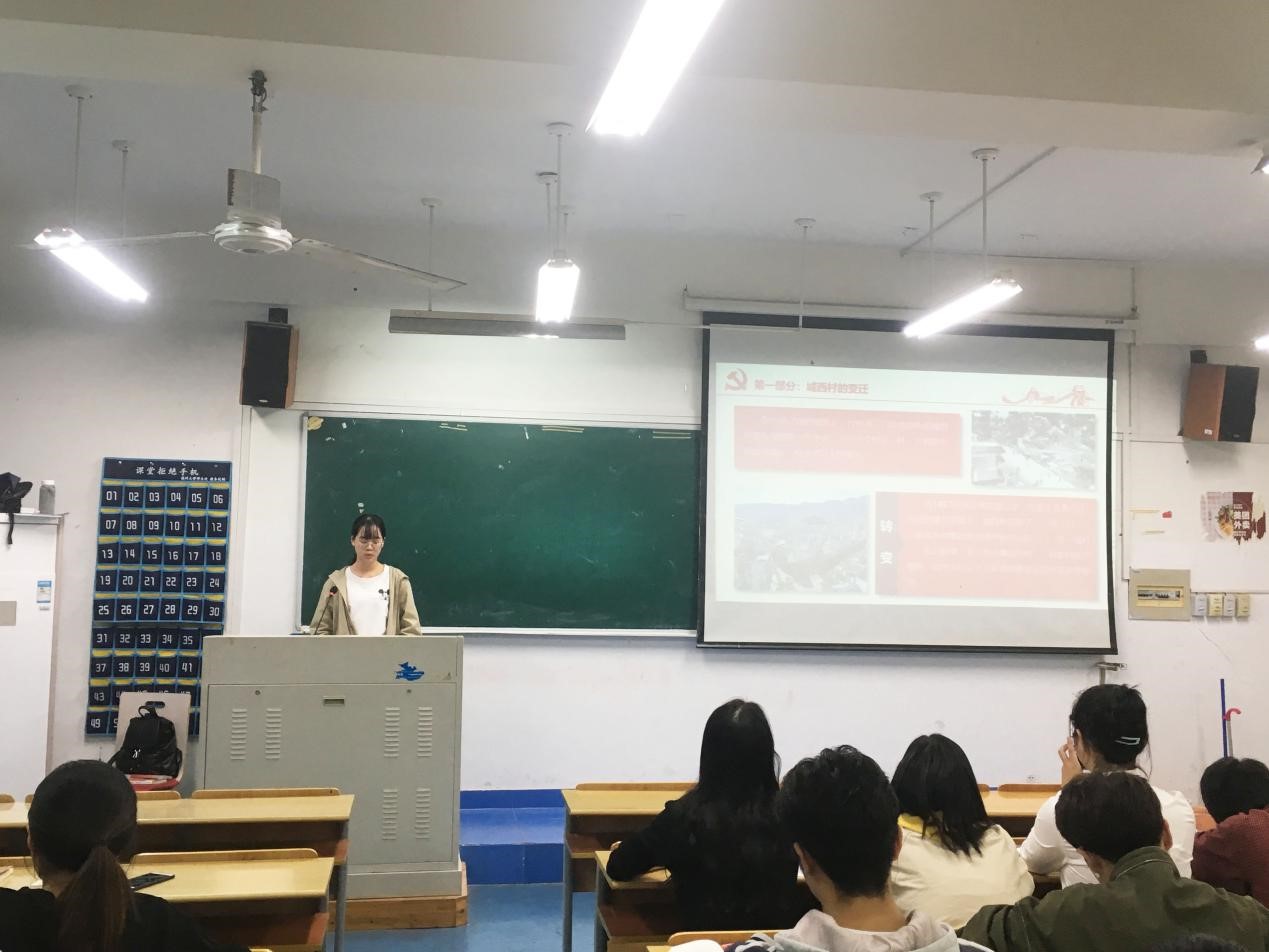 首先,冯煜瑶通过两段精简的图文资料,介绍了三门县城西村历经62年,从告别“一穷二白”到一跃成为村集体固定资产超亿元的三门“第一强村”的巨大转变。 随后,冯煜瑶从“一任接着一任干”、“两条延续62年的‘铁规’”和“有事摊桌面、遇事要开会”三个方面介绍了城西村的八位书记为实现村庄的快速发展,团结带领全村党员群众发展农业、兴办企业、兴建市场、推进股改、加强治理、富民惠民,最终城西村真正实现了由穷变富、由弱变强的华丽蜕变。