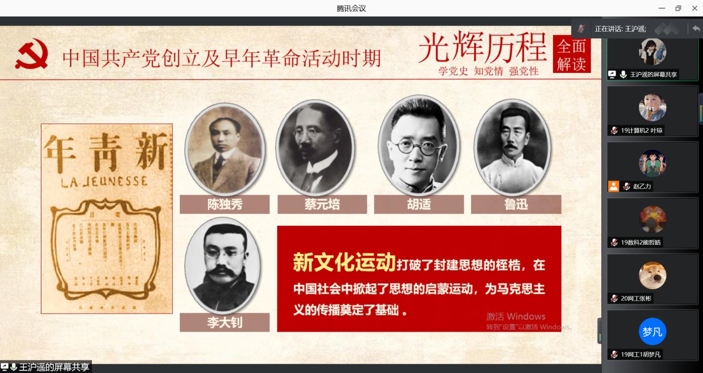 为学习贯彻习近平总书记在庆祝中国共产党成立100周年大会上的重要讲话精神,yl23411永利官网登录本科生第二党支部于2021年7月31日下午1时30分在腾讯会议上召开了学习会。此次学习会由18计算机2班王沪遥同学主持,支部全体党员以及20名入党积极分子参加。