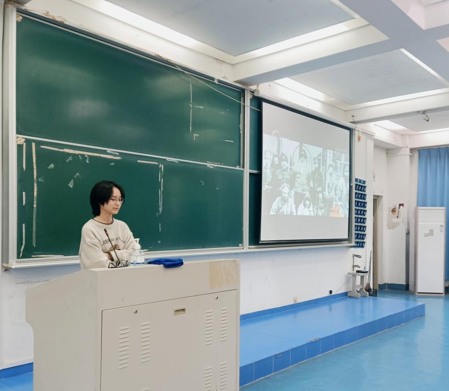 吴千喜同学讲述了杨靖宇这位共产党员的生平,让同学们从字里行间感受到他的英勇与坚贞,35岁便英勇就义的他,是中华的英雄;同时也以一个视频清晰明了的呈现了郭安民的感人事迹,便于使同学们更直观的感受中国共产党人的热血。