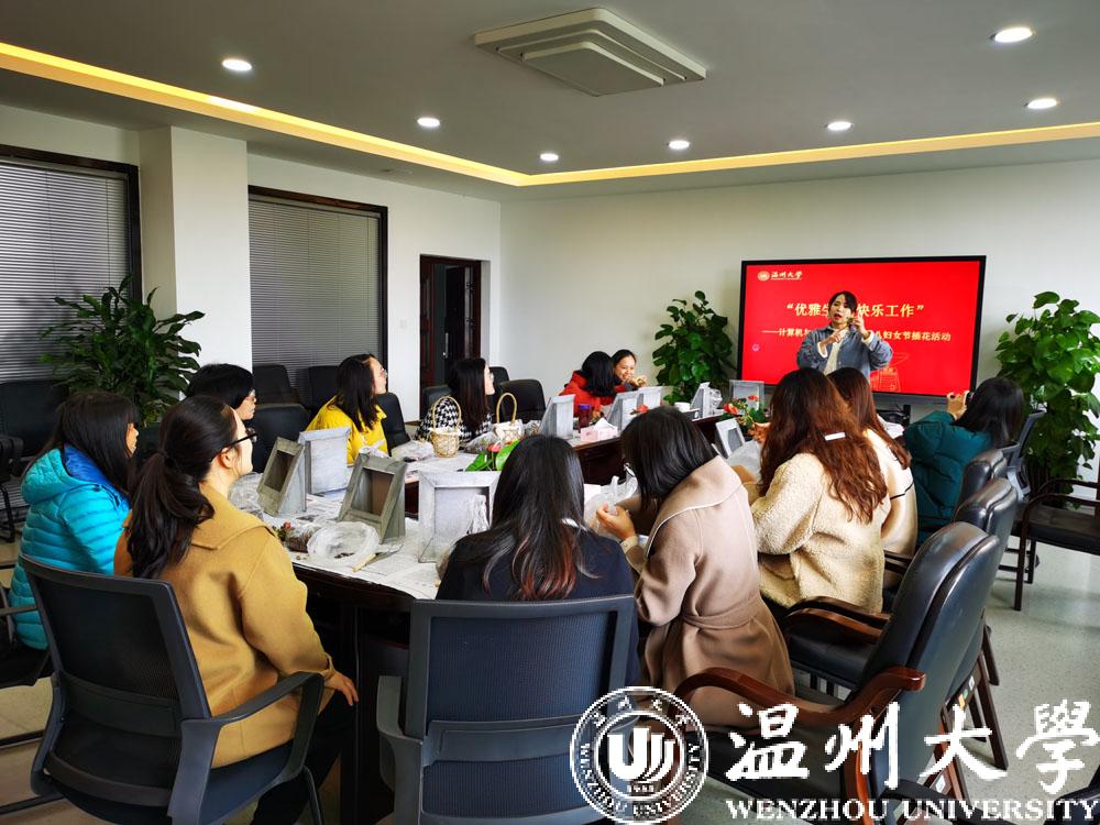 本次活动特别邀请到了温州市瓯花韵插花艺术研究所副理事长余老师给大家讲授多肉花艺及插花技巧,并在现场做了生动的演示。在花艺师的讲解和指导下,女教工兴致盎然地练习插花技艺,对各种多肉进行色彩搭配,细致地置入容器钟,一份份造型各异的多肉花艺作品精彩展现出来。现场充满了春天的气息。
